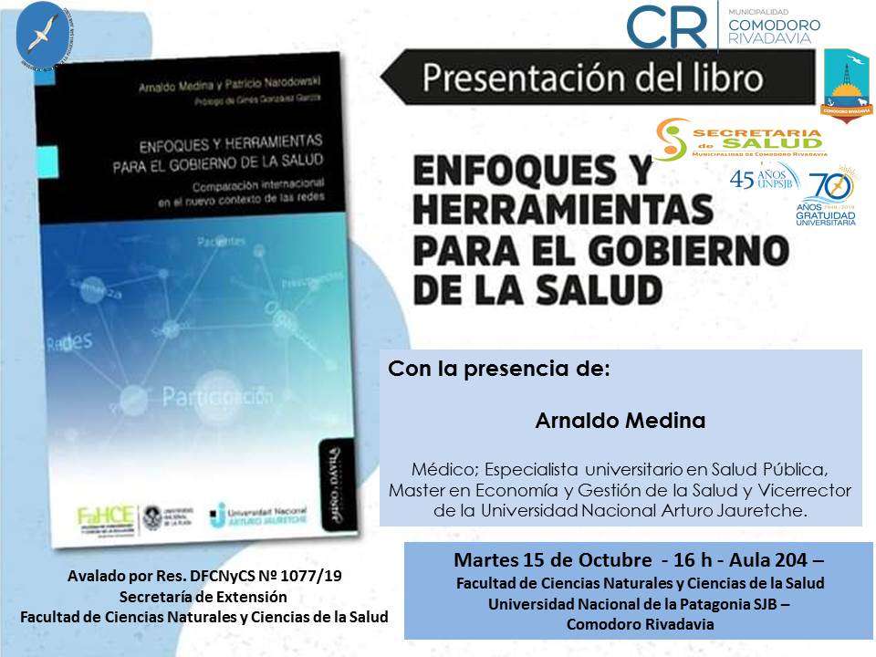 Presentación del libro Enfoques y herramientas para el gobierno de la salud: Comparación internacional en el nuevo contexto de las redes de Arnaldo Medina (actual Vicerrector de la Universidad Nacional Arturo Jauretche) & Patricio Narodowski.