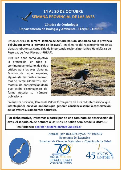Lugar de dictado: Facultad de Ciencias Naturales y Ciencias de la Salud. Universidad Nacional de la Patagonia San Juan Bosco.