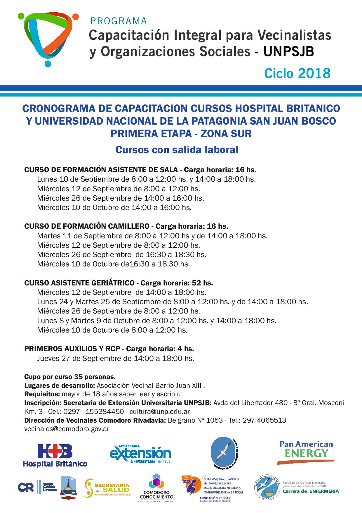 Inscripciones: Secretaría de Extensión Universitaria UNPSJB: Avda Libertador 480 - Bº General Mosconi. Km 3 - Cel: 0297-155384450 - Esta dirección de correo electrónico está protegida contra spambots. Usted necesita tener Javascript activado para poder verla.