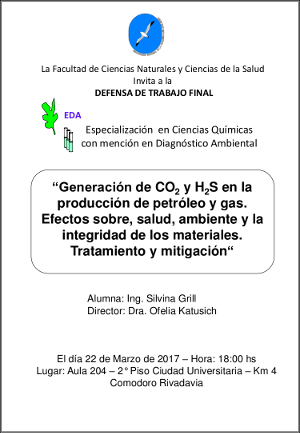 “Generación de CO2 y H2S en la producción de petróleo y gas. Efectos sobre, salud, ambiente y la integridad de los materiales. Tratamiento y mitigación". Dicha defensa se