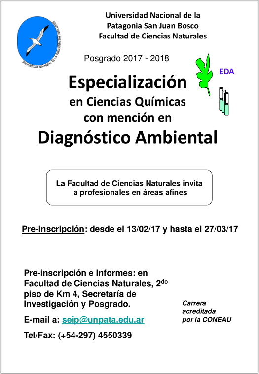 Lugar de inscripción: Secretaría de Investigación y Posgrado de la FCN-UNPSJB.