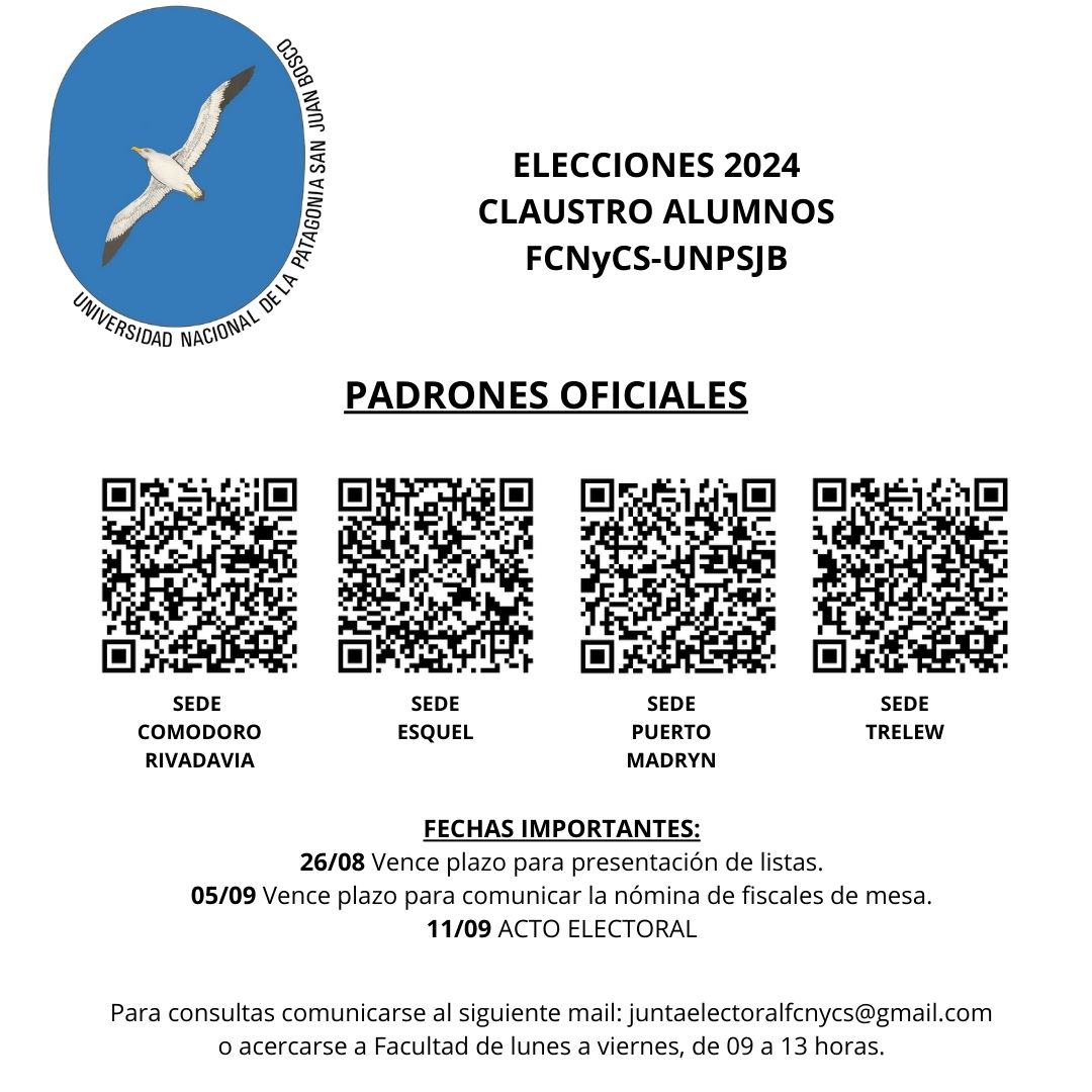 Consultar padrones electorales provisorios para las elecciones de representantes al Consejo Directivo de la FCNyCS y al Consejo Superior de la UNPSJB, por el claustro alumnos, que re realizaran el día 11 de septiembre de 2024.-
