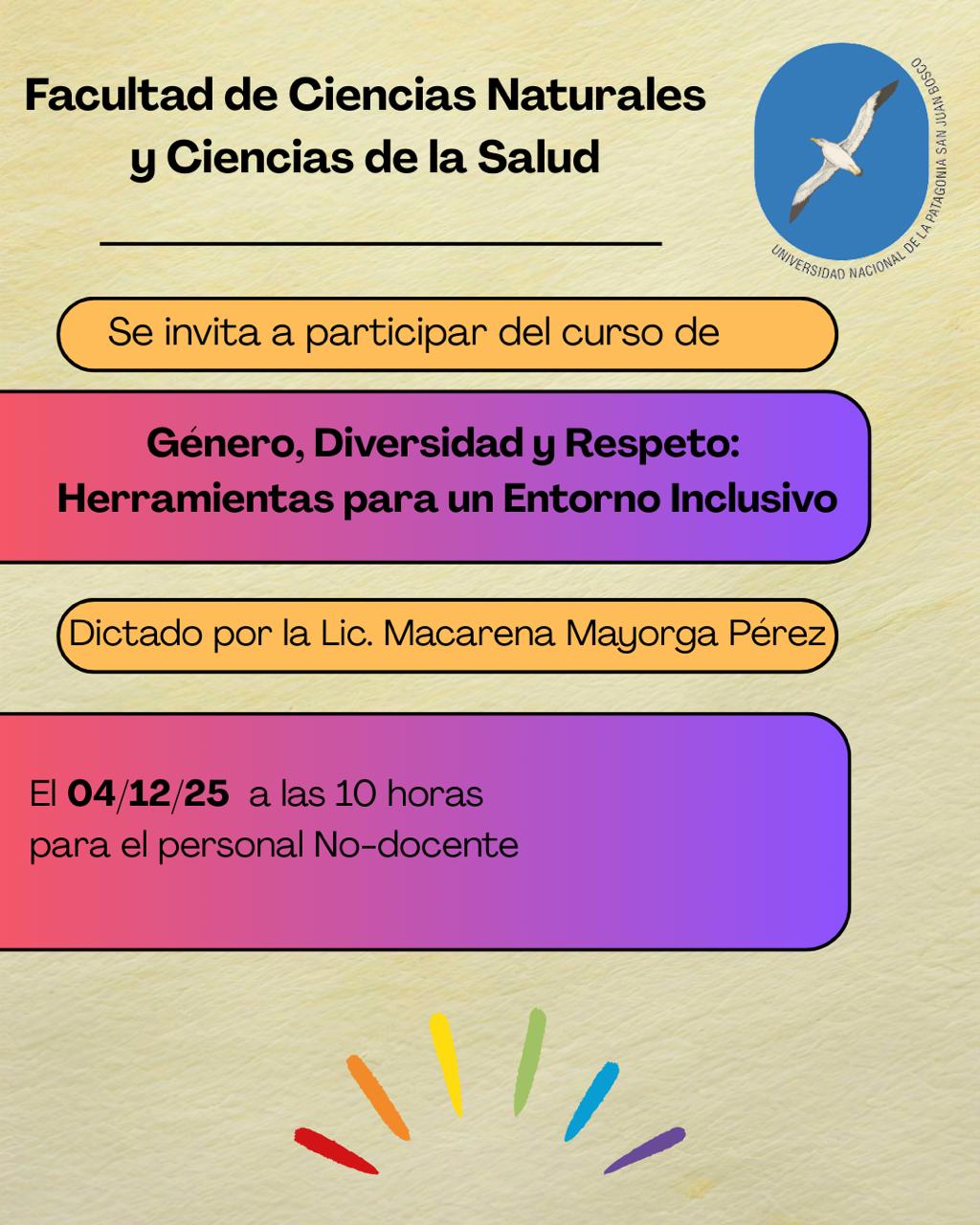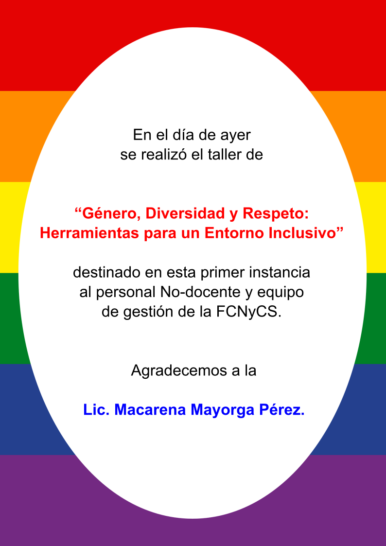 Se invita al personal Nodocente de la Facultad de Ciencias Naturales y Ciencias de la Salud a participardel Curso de género, diversidad y respeto: herramientas para un entorno inclusivo.