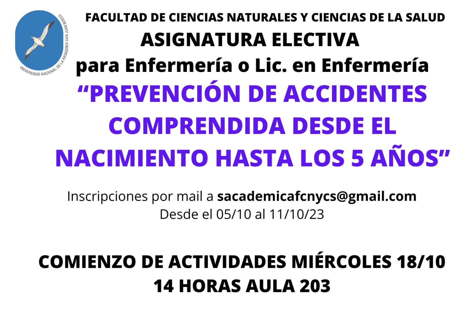 Lugar de Dictado: Campus Aldo López Guidi, FCNyCS, Sede Esquel