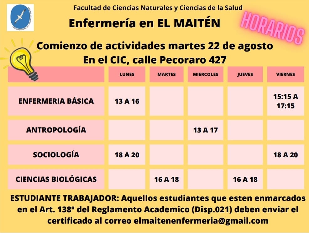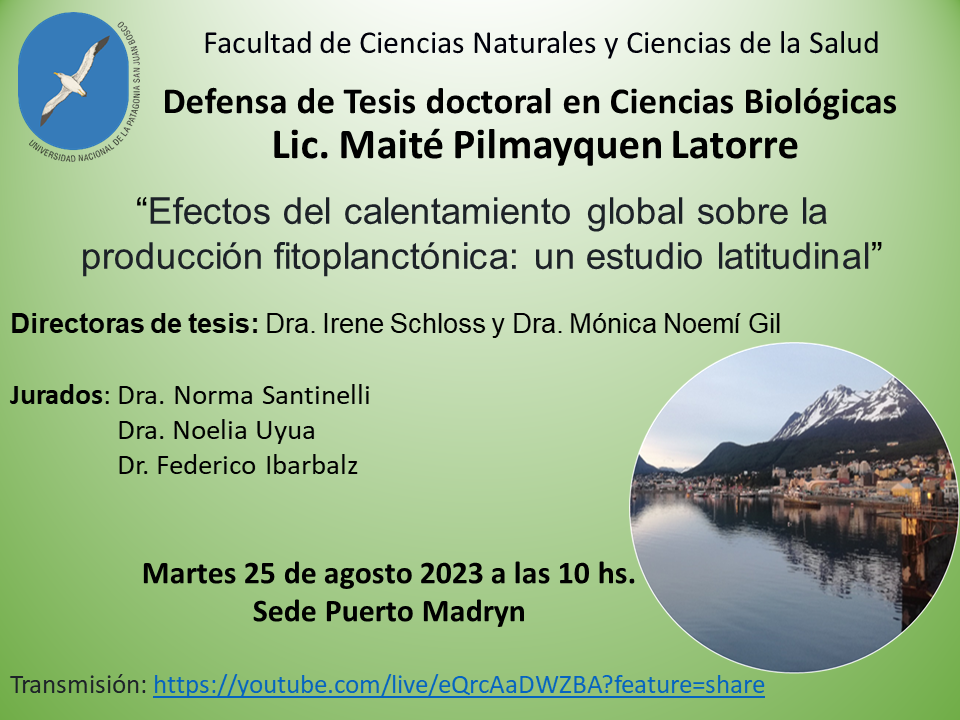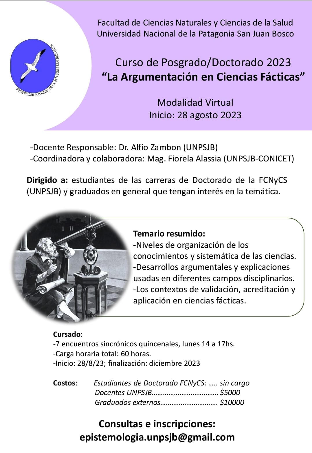 Informes e inscripciones: Facultad de Ciencias Naturales y Ciencias de la Salud. Sede Puerto Madryn