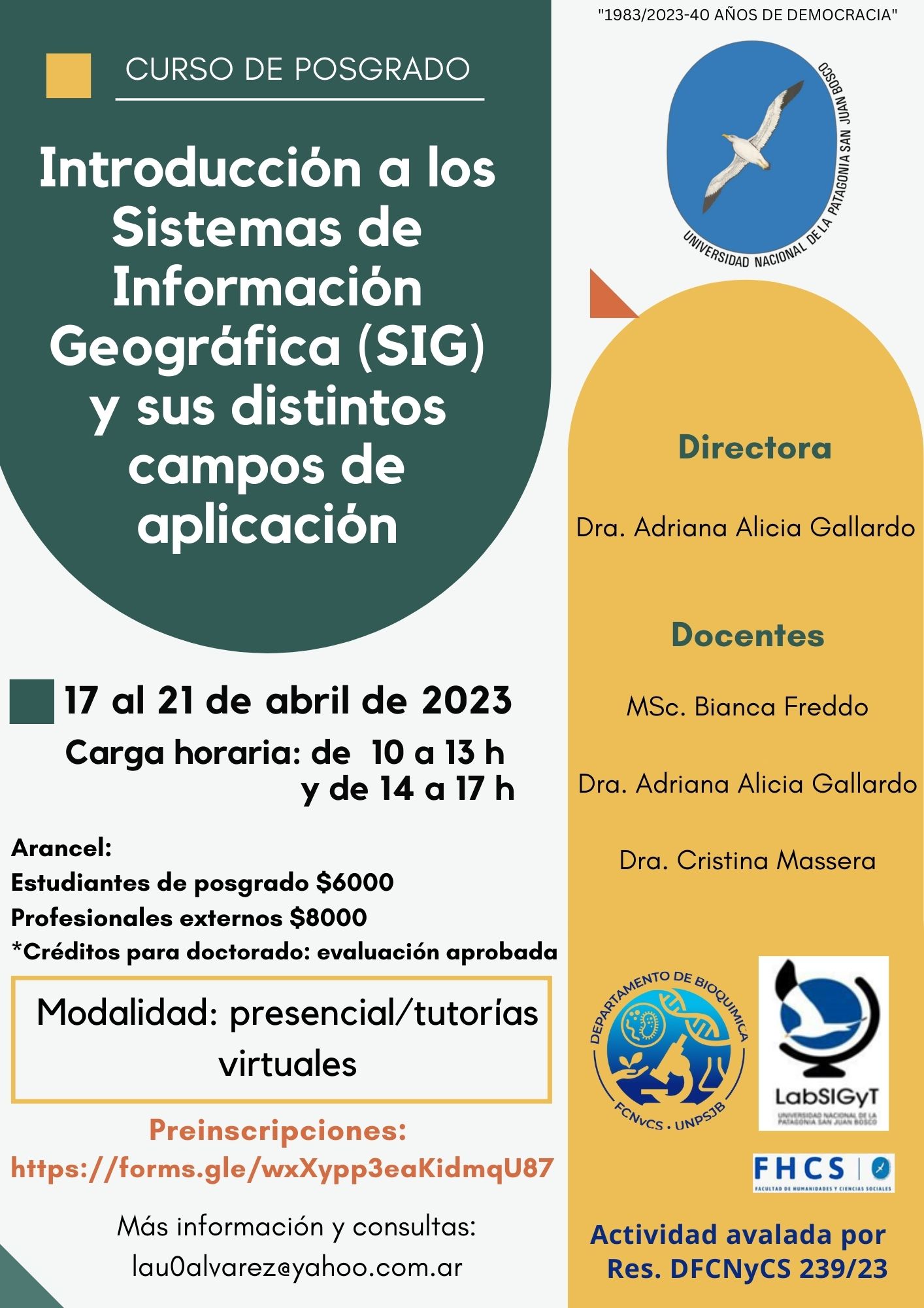 Listado de direcciones de correo electrínico de los docentes para realizar consultas durante el periodo de cuarentena: