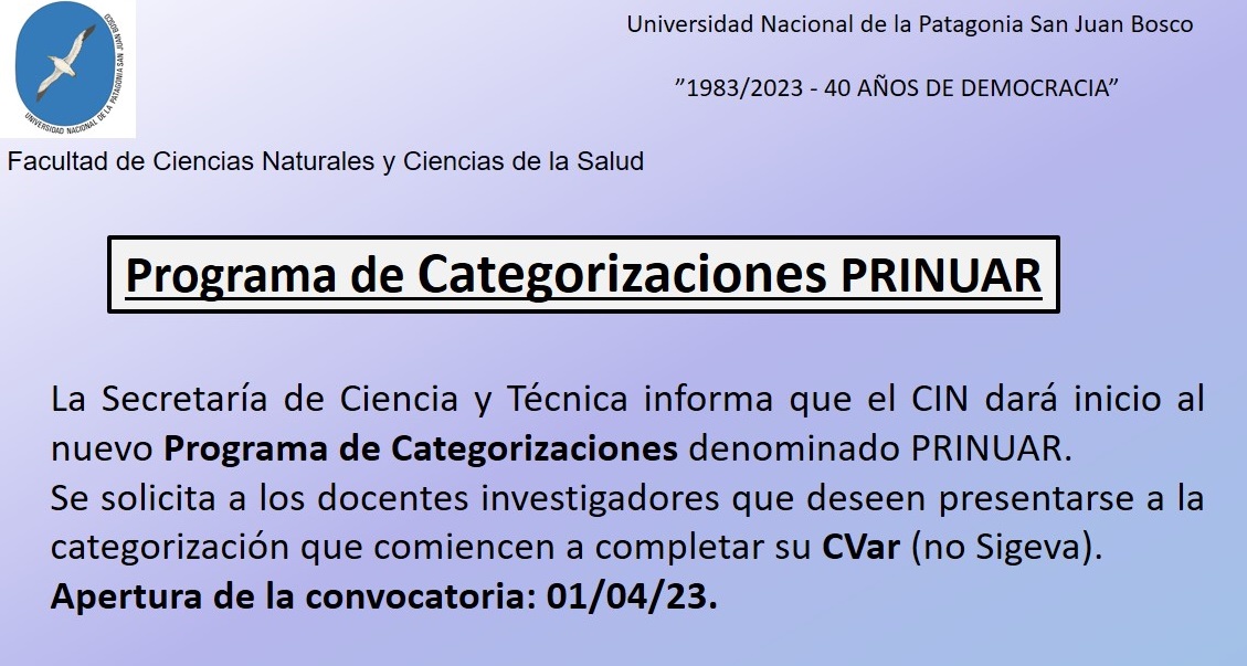Bienvenidos a la Facultad de Ciencias Narurales y Ciencias de la Salud (Comodoro Rivadavia).