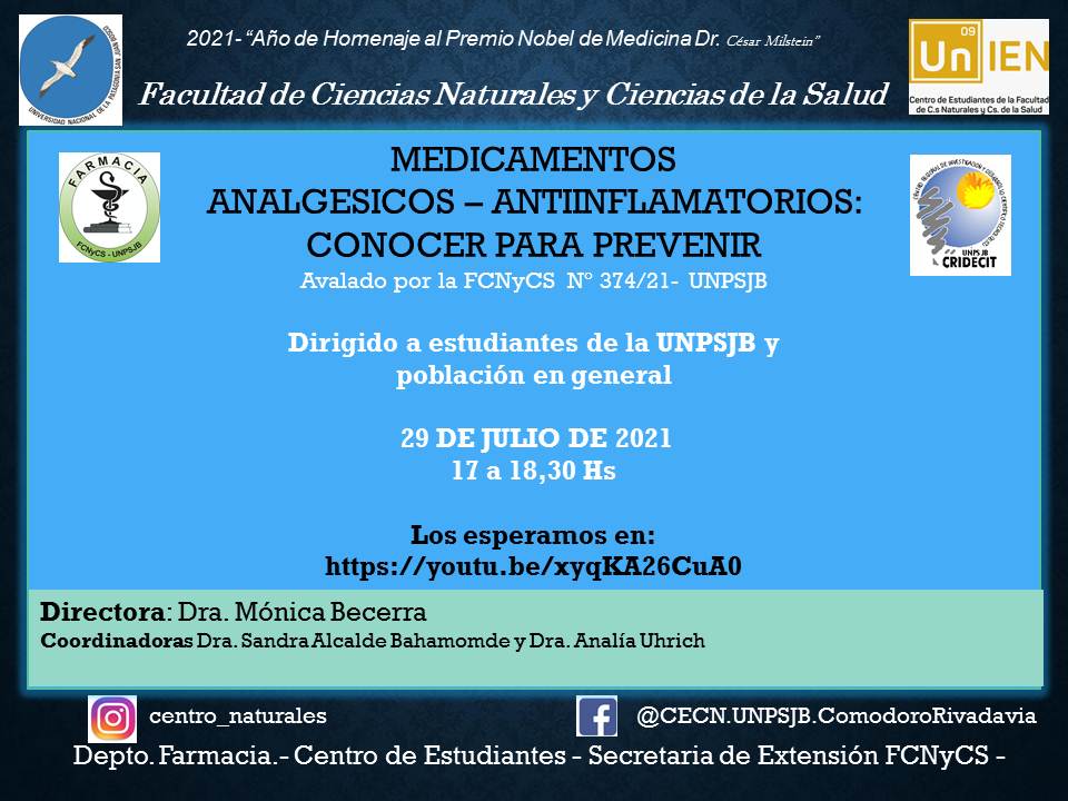 Invitamos a compartir la actividad de extensión propuesta por el departamento de Farmacia, en conjunto con el centro de estudiantes, a desarrollarse el próximo 29 del corriente.