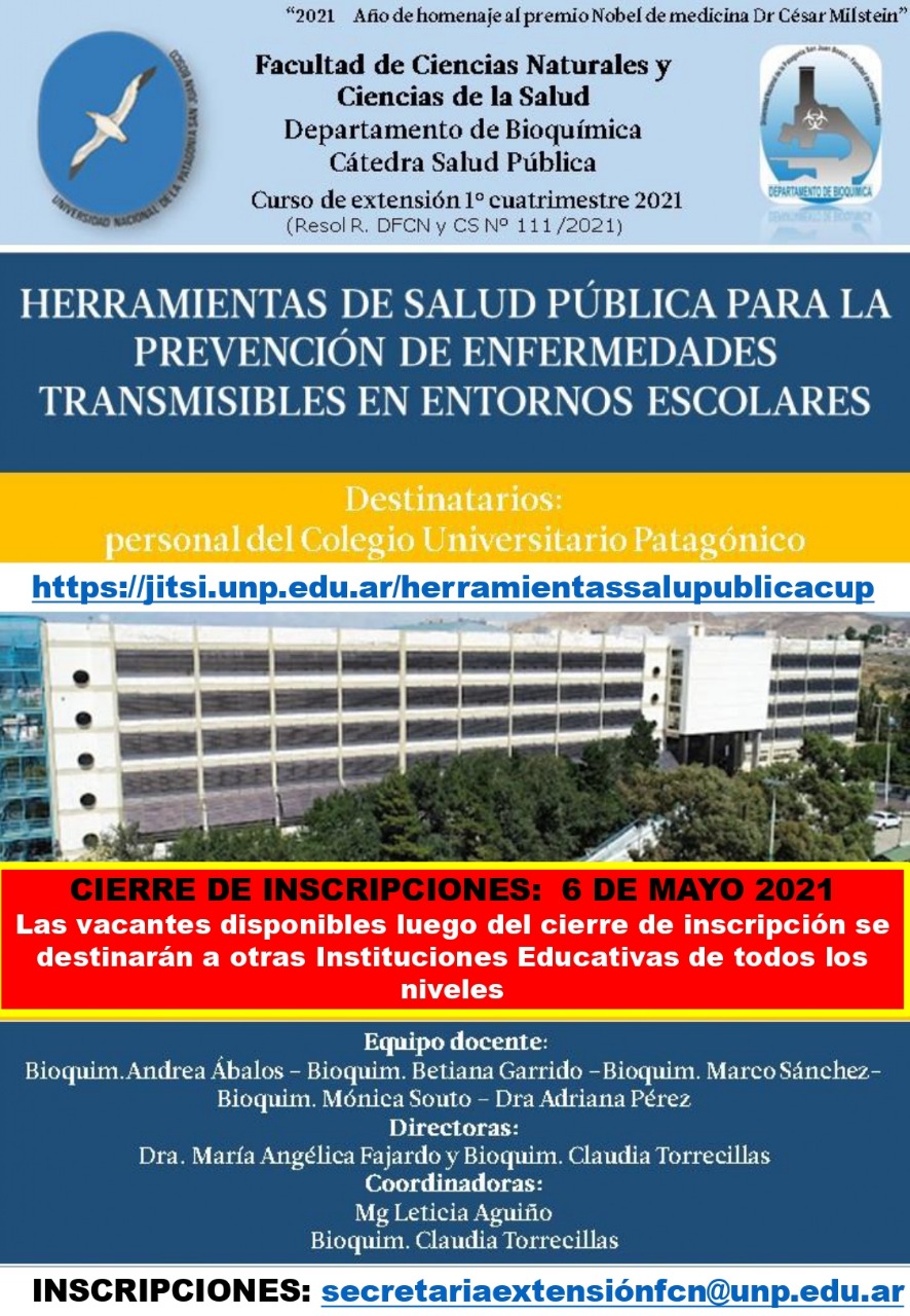 Se recuerda, a todos los interesados, que el día viernes 30 de Abril finaliza la inscripción para cursar carreras en la Facultad de Ciencias Naturales y Ciencias de la Salud en el 2021
