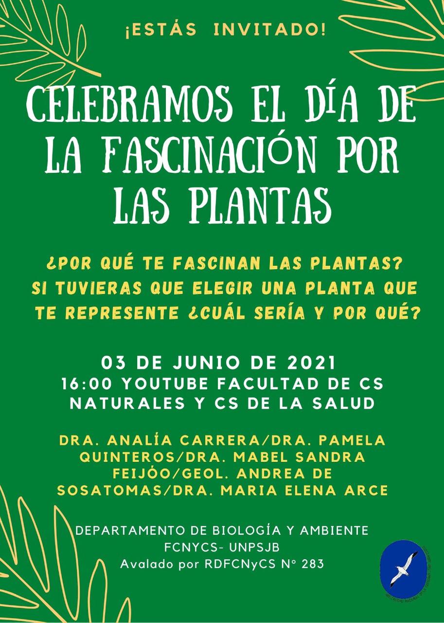 El Departamento de Biología y Ambiente de la FCNyCS-UNPSJB te invita a celebrar el día de la Fascinación por las plantas! ☘️????.