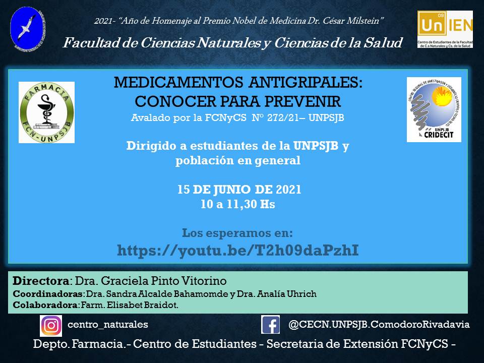 Te esperamos el Jueves 03 de Junio a las 16:00hs por el canal de youtube de la FCNyCS: